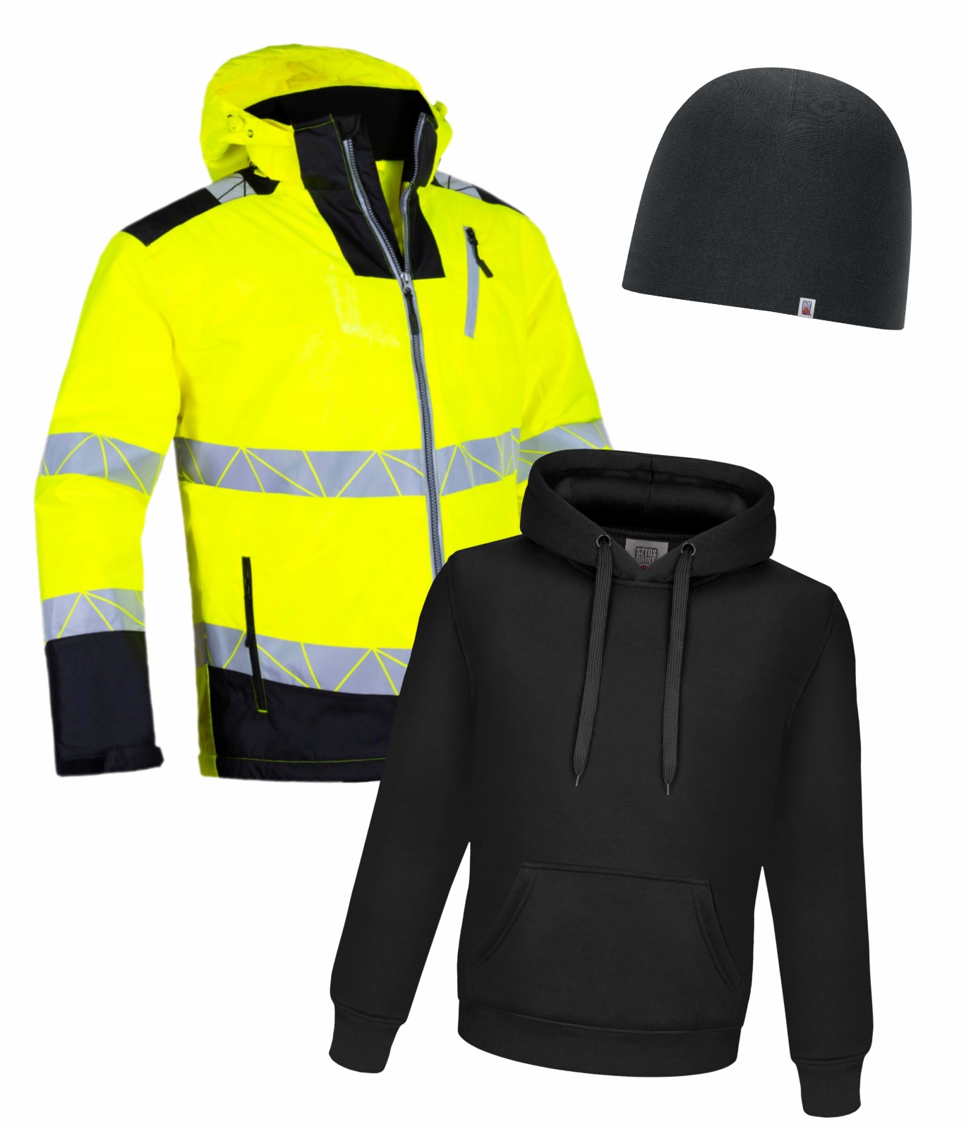 Kompletny zimowy zestaw roboczy to idealne rozwiązanie dla pracowników, którzy potrzebują niezawodnej ochrony przed chłodem, wiatrem i wymagającymi warunkami atmosferycznymi. W skład zestawu wchodzi ocieplana kurtka, wygodna bluza robocza oraz ciepła czapka z firmowym nadrukiem, tworząc funkcjonalny i spójny komplet do pracy w sezonie jesienno-zimowym. Kurtka zapewnia doskonałą izolację cieplną oraz swobodę ruchów, chroniąc jednocześnie przed deszczem i wiatrem.   Bluza wykonana z miękkich, trwałych materiałów gwarantuje komfort noszenia, dodatkową warstwę ocieplenia i doskonale sprawdza się podczas codziennych obowiązków.   Uzupełnieniem zestawu jest czapka zimowa z nadrukiem firmowym, która nie tylko ogrzewa, ale również podkreśla profesjonalny wizerunek pracownika. To praktyczny i estetyczny zestaw, który świetnie sprawdzi się podczas pracy w terenie, na magazynie czy w zakładzie produkcyjnym, wszędzie tam, gdzie liczy się ciepło, wygoda i trwałość odzieży roboczej.   Kluczowe cechy: